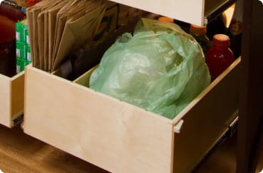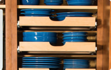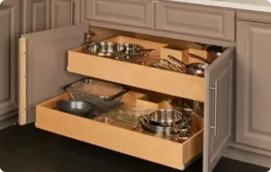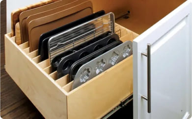 Tray Bin Height pull out drawers are extra tall units that often have moveable dividers for customized storage.
